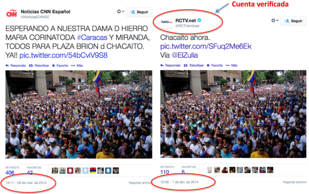 El recurso de algunos medios de comunicación de reutilizar fotografías antiguas para ilustrar hechos actuales es algo que se viene repitiendo constantemente desde el comienzo de las protestas en un intento por magnificar la asistencia real de manifestantes a las movilizaciones opositoras:
