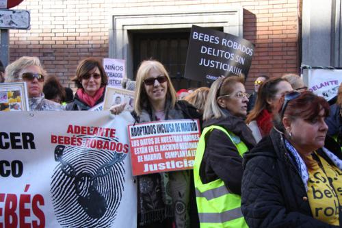 La marcha bajo el lema Por nuestro derecho a saber y a obtener justicia fue convocada pasadas las once y media de la mañana, frente a la sede del Ministerio de Justicia, y reunió a más de 500 personas, la mayoría víctimas del robo de niños. Las madres, padres, hermanas y hemanos no decaen en la búsqueda. Recorrieron varias calles del centro de Madrid al grito de «Justicia ya», «Los niños robados no estamos muertos», «Iglesia, abre los archivos» o «Dónde están nuestros niños».