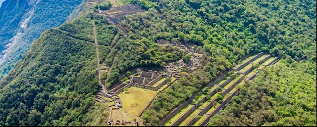 La forma rectangular se repite constantemente en Choquequirao, valle del río Apurimac, sus edificaciones y plataformas ostentan formas cuadrangulares. Tanto en Machupicchu como en Choquequirao, ejemplos tomados aquí,  la arquitectura inca-quechua se adapta a la montaña, pero en la integración, se guarda la forma geométrica cuadrangular en muchos elementos y continúa modelizando el universo, reproduciendo la  estructura global del mundo.