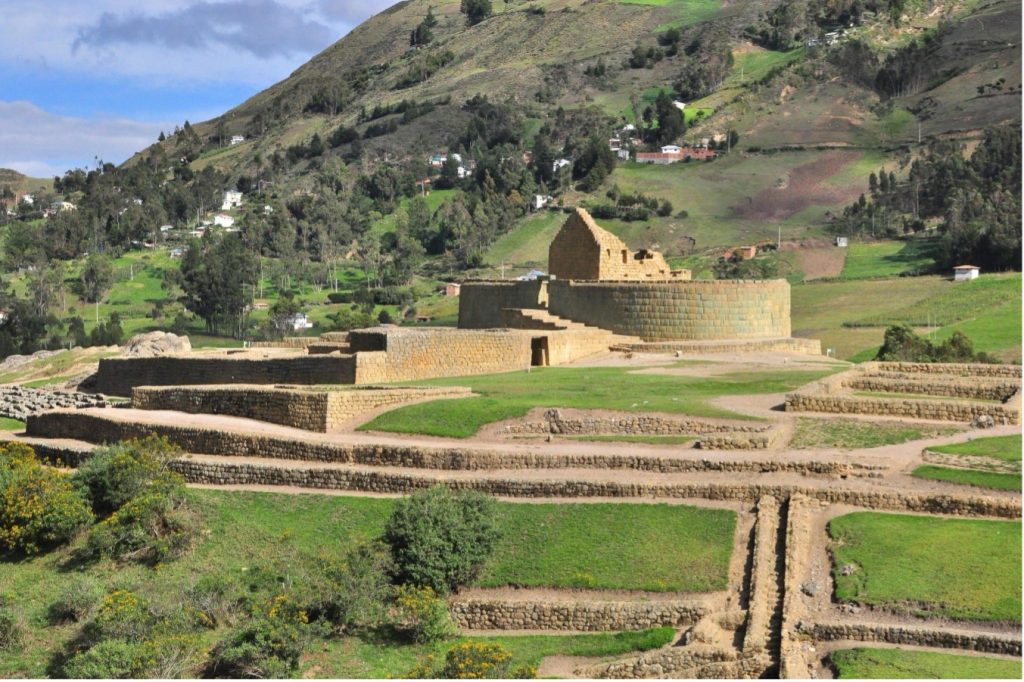 Otro de los ejemplos de la circularidad arquitectónica inca es el gran templo del Sol (Inga Pirca) en la provincia del Cañar, Ecuador, el terraplén superior tiene planta ovalada oblonga y  alude al movimiento solar. Aquí “se mueve el Sol en forma circular durante el año”, típica idea mito- poética de los incas. En la parte superior del terraplén se ubica una habitación de dos espacios sin comunicación entre ellos, pues los separa un muro medianero. En los solsticios- 21 de junio y 21 de diciembre-los rayos del sol penetran por la única puerta,  se alinean con la jamba formando un camino de luz e iluminan la parte oriental, adornada con nichos que contenían objetos de oro que relucían y aumentaban el resplandor solar. En cambio, durante los equinoccios del 21 de marzo y el 21 de septiembre, los rayos solares entran por la misma y única puerta, pero iluminan la pared occidental también adornada con hornacinas con figuras de oro que producían un gran resplandor. La divinidad había completado su camino en forma oval, es decir circular.