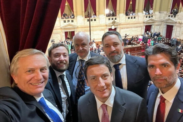 Fuentes: CTXT [Imagen: Santiago Abascal con Alejandro Chafuen (al fondo a la izquierda), expresidente de Atlas Network, y otras figuras de la extrema derecha internacional, en la toma de posesión de Milei. Diciembre de 2023. / Instagram (@joseantoniokast)]