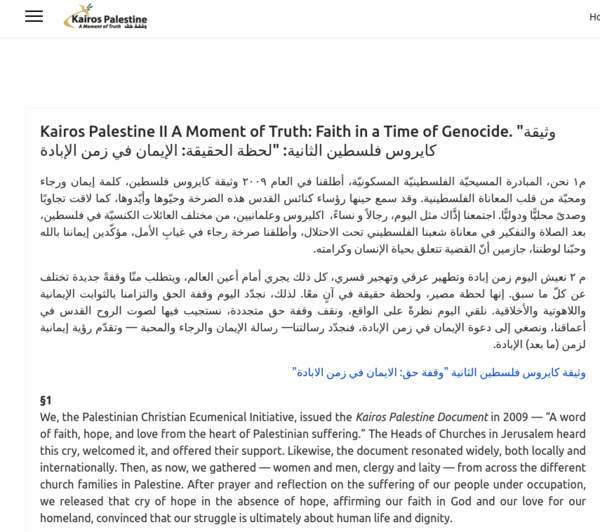 Fuente: “¿Cuál es la palabra cristiana ante el genocidio?”: nuevo documento de Kairos Palestina llama a repudiar el sionismo