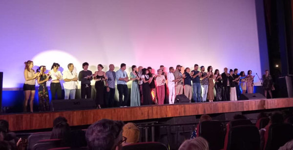 A la insistencia del director, con voz de nervios y sinceridades, escuchamos a varios de los hacedores de la película. Sin dudas Santana logró tejer un buen equipo. Preciosa la joven actriz, que, en regalo de su primer cine, nos compartió su premio: ¡que su mamá “!había venido desde el Camagüey!”, para estar allí, con el laurel de sus talentos, desvelos y esfuerzos compartidos.