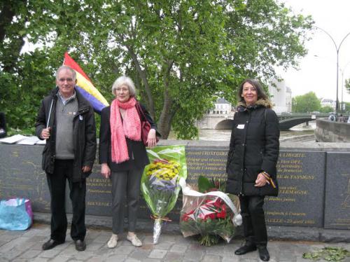 Tuve el honor de posar junto a Claire Role-Tanguy (en el centro de la foto) y Rosa Sánchez, miembro de ARE RP, durante la ceremonia en las que ambas depositaron conjuntamente flores ante la placa conmemorativa de La Nueve al borde del Sena.