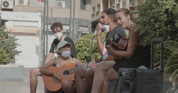 Se llama Zakaría y ha escrito una canción. De vez en cuando hace música, explica que días atrás estaba pensando en la manifestación, y compuso un tema para acompañarla: “el texto me sale del corazón, es lo que siento, es lo que sentimos muchos, esto es lo que nos pasa”, explica en darija, mientras Joana, activista de Maakum, traslada al castellano sus palabras. El cantante ha estado ensayando el tema varios días con dos de las activistas, ellas acompañan con la guitarra, mientras otro chico migrante toca el cajón y Zakaría canta sobre esas juventudes que no ven camino. “Estoy cansado de tanta frustración, estoy cansado de tanta humillación, en mi país no hay futuro ni suerte, me lanzo al mar, o llego o muero”, corean las chicas en castellano.