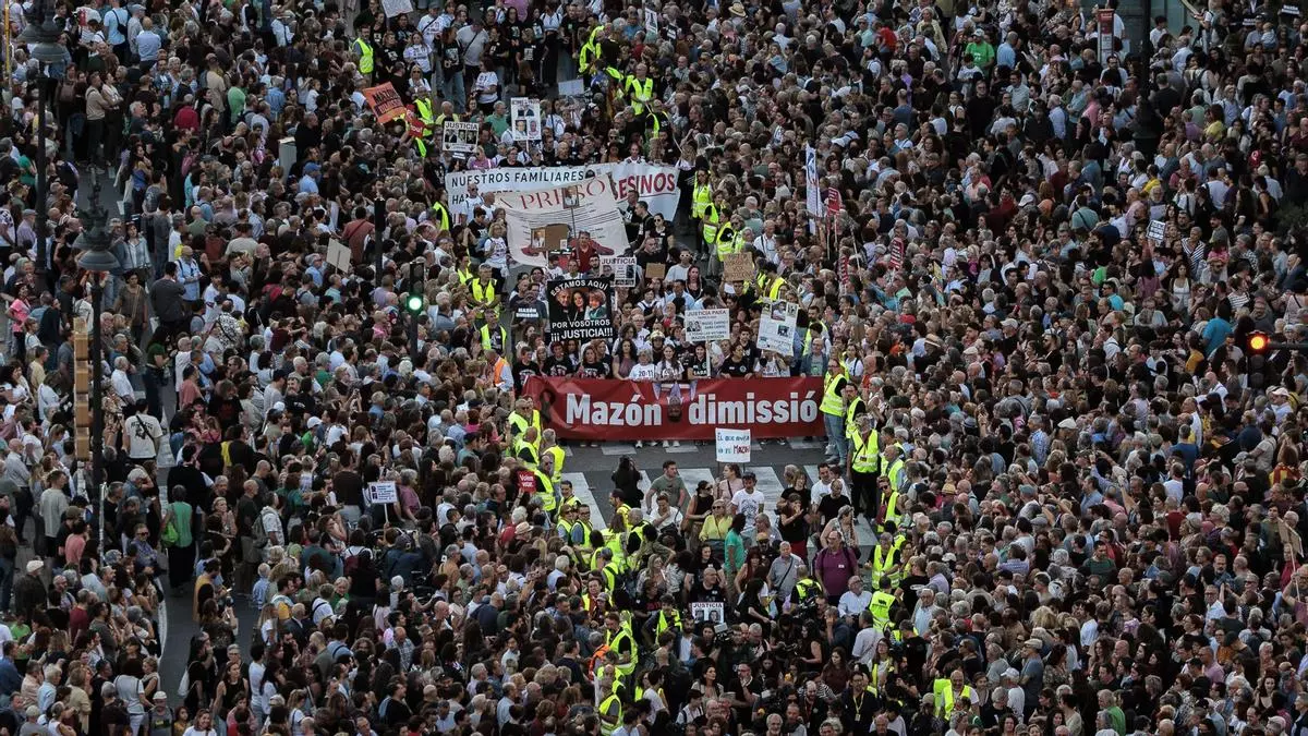 La marcha, en vísperas del aniversario de la tragedia que dejó 229 víctimas mortales, es una de las más multitudinarias en una ciudad, que exige sin cesar la dimisión de Carlos Mazón y que se investigue su papel en la gestión de la dana.