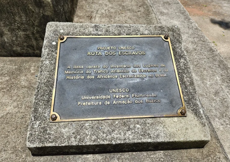 Siento el viento del mar. Ahí está Ponta do Pai Vitório, mirando el horizonte. Su nombre es la historia de un naufragio. Año 1850. Una noche de invierno, una tormenta horrible y un barco negrero que se hunde. Los africanos sobrevivientes escapan de los traficantes. Saltan entre las rocas de la costa. Vagan por los arenales. Finalmente, exhaustos, encuentran un refugio. Nace el Quilombo da Rasa, en pie de lucha. Hago una foto al monumento que lo celebra.
