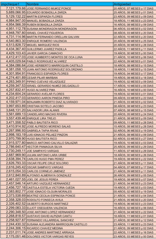 Aparte de su liquidación conforme al Contrato Colectivo de Trabajo y de la Ley Federal del Trabajo, el Comité Central y sus incondicionales se asignaron millonarias compensaciones adicionales, sin mayor explicación.
