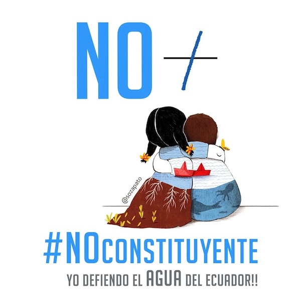NO… no podemos poner en riesgo lo poco o mucho que se ha alcanzado desde que la Constitución de 2008 se aprobó en las urnas. Una Constitución que no surgió gracias a algún individuo en particular, sino que fue el resultado acumulado en especial de las luchas sociales posteriores al atraco bancario y al desastre neoliberal que expulsó a miles de ecuatorianos al exterior a inicios de los años 2000. Una Constitución que propone un proyecto de vida en común fundamentado en la justicia social y ecológica, hoy amenazado por varios grupos de poder que enfilan sus baterías en su contra y ahora buscan pescar a río revuelto, en medio de un giro autoritario que se extiende por diversas latitudes del mundo.