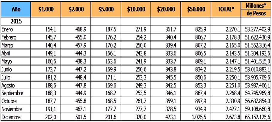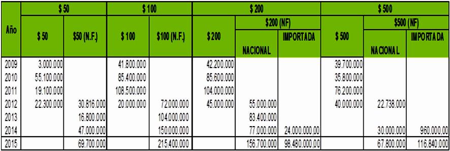 Producción de Billetes de Colombia 2015
