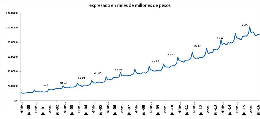 Comportamiento de M1 de Colombia durante 2000-2016 (Agosto)