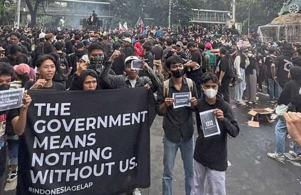Fuentes: Rebelión [Foto: Protesta de la Generación Z en Indonesia con una pancarta que reza «El gobierno no es nada sin nosotros», febrero de 2025 (David Wadie Fisher-Freberg, Wikimedia Commons)]