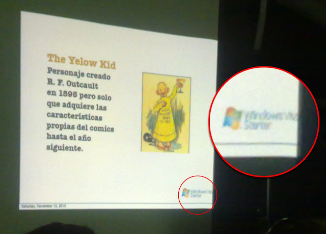 - Si usted va a organizar un foro o charla, asegúrese de usar computadores con software libre adecuadamente instalado. No sólo le evitarán problemas como el mostrado arriba, sino que serán inmunes a virus y troyanos presentes cuando alguien meta un pendrive en su equipo.