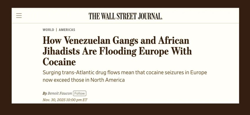 Justo cuando se difunden las noticias de que Trump ha lanzado a Maduro un ultimátum para que abandone Venezuela inmediatamente si quiere escapar con vida, el Wall Street Journal, propiedad de Murdoch, ha publicado un artículo de propaganda bélica sorprendentemente descarado titulado «Cómo las bandas venezolanas y los yihadistas africanos están inundando Europa con cocaína