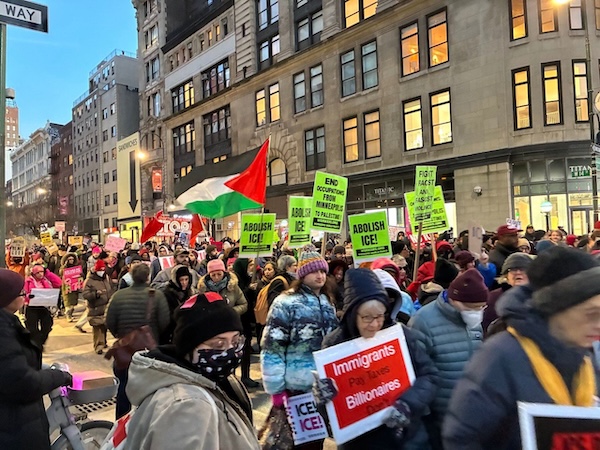 Durante la protesta del 23 de enero en Union Square, en la ciudad de Nueva York, el Partido Mundo Obrero exhibió pancartas con el lema: «¡Detengan la ocupación desde Minneapolis hasta Palestina!». Este mensaje no pretendía equiparar los casi 78 años de apartheid y control militar sionista sobre todo un pueblo con la actual invasión de Minneapolis por parte de 3000 soldados de asalto del Servicio de Inmigración y Control de Aduanas (ICE). Las ocupaciones de cualquier naturaleza no deben presentarse como iguales.