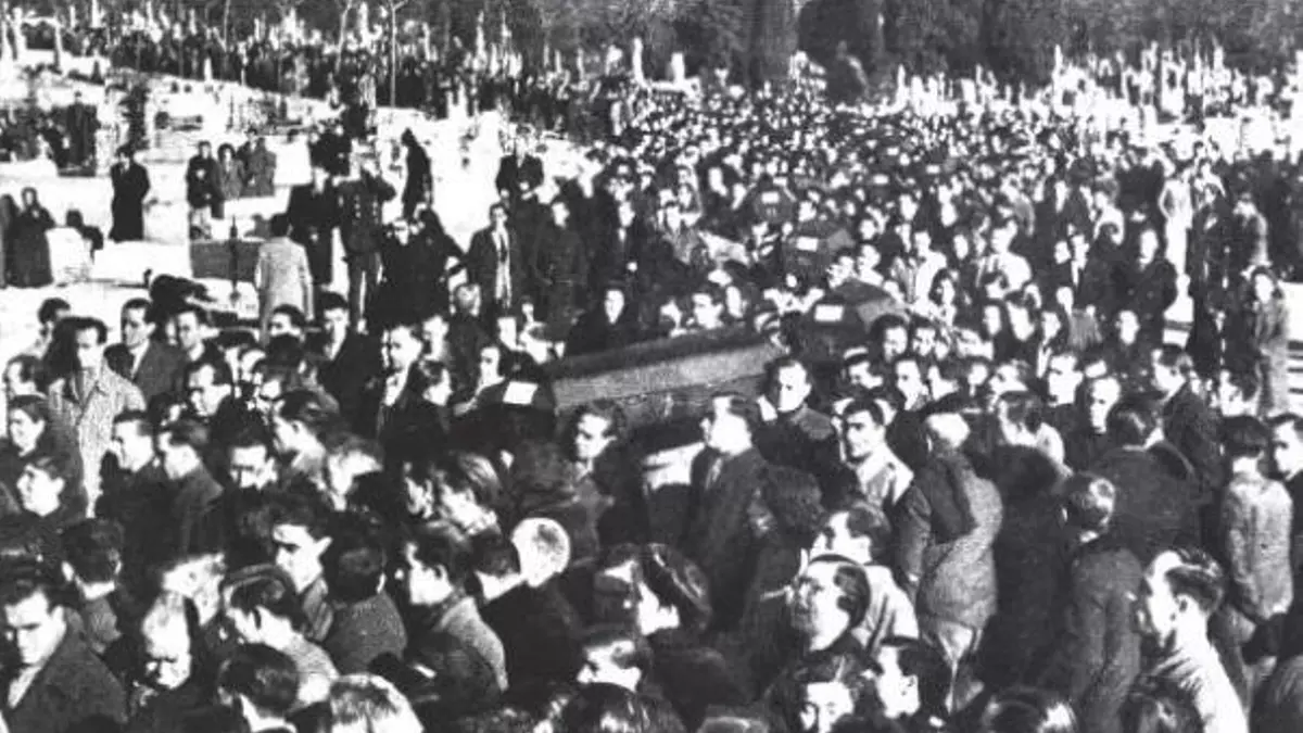 Imagen del multitudinario entierro de las víctimas en el cementerio de La Almudena.