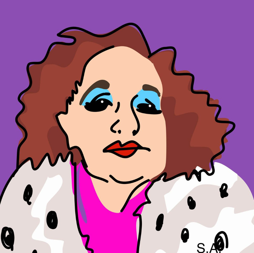 Pero cuando volvió a España en 1962, era una desconocida en su país. Era la España gris de Franco. Nada quedaba del Madrid que ella vivió. Tampoco sus amigos. Paloma Chamorro, en una entrevista que le hizo para TVE a finales de los años setenta, la describió como una mujer refinada, de un nivel intelectual admirable y de amplia y profunda cultura. “Mallo exhibía en las pantallas de la Transición una imagen de máscara de Carnaval tan excesiva como la que había desplegado su antiguo amigo Dalí, pintada exageradamente y como travestida de sí misma”. Acabo inventando un personaje, que fue eclipsando su obra, y lo representó hasta el final. Dalí ya decía de ella cuando la conoció que era “mitad ángel, mitad marisco”, combinando lo sublime con lo grotesco, reflejando su mezcla de fascinación y extrañeza. Maruja conectó con la juventud y con la Movida madrileña, pero más como personaje que como artista.