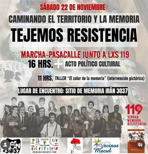 El próximo sábado 22 de noviembre, invitamos a vecinas y vecinos de Macul a caminar nuevamente junto a los 119 recorriendo las calles de nuestros barrios, tejiendo resistencias entre el ayer y el hoy.