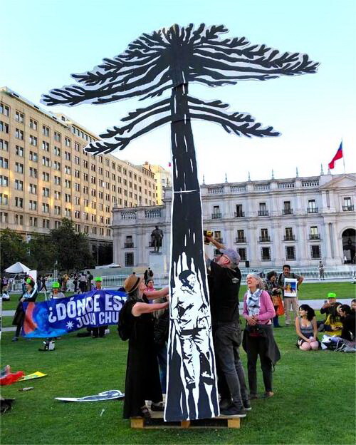 2.- Ha transcurrido un año de marchas cada mes, pero también de foros, charlas, canciones y rap, poemas, videos, bordados, rogativas, programas de radio, y acciones de arte que van de los extremos sur a norte del país, en ciudades, cerros y costa… porque los pueblos estamos aprendiendo a defender a los defensores. En un Encuentro Internacional Virtual, un encuentro estudiantil, y en eventos internacionales se ha destacado el caso. La investigación independiente impulsada desde Día a Día fue develando intereses ocultos en la trama CONADI/empresariado forestal y opacando los montajes en marcha. Al parecer, la ofensiva mediática contra la familia de Julia propiciada desde los intereses del orden establecido no tuvo el efecto buscado, y la exigencia por verdad y justicia permanece intacta y ampliándose, encontrando la represión. Pero la lucha de verdad y justicia por Julia Chuñil, mapuche, pobre y mujer, sólo puede crecer más Día a Día, como dice nuestro espacio. Racismo, opresión de clase y patriarcado se unen como aspectos fundantes del Estado chileno hoy al servicio del gran empresariado extractivista cuyos medios de prensa predican que los defensores ambientales son un obstáculo para el progreso y la inversión.