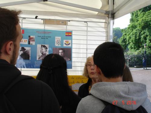 Además de los actos culturales y lúdicos que se desarrollaron a lo largo de la jornada, se instaló una exposición al lado del hermoso parque Buttes-Chaumont, en donde estuvimos atendiendo al numeroso público junto a nuestras compañeras de «Amis des Républicans Espagnols».