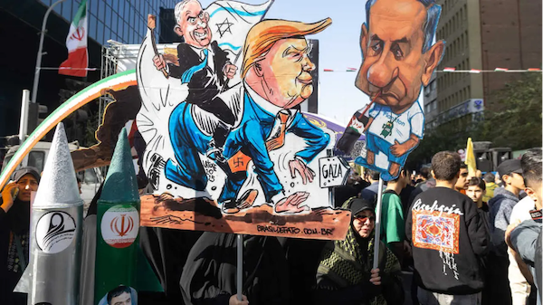 En esta lógica típicamente imperialista y sionista, Estados Unidos e Israel tienen todo el derecho a bombardear, invadir, masacrar a la población de un país, y este tiene no solo que aguantarse sino postrarse de rodillas ante sus agresores, como está ocurriendo, lamentablemente, en Venezuela.
