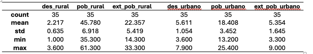 La figura 2, muestra las tres variables de manera conjunta para el sector rural