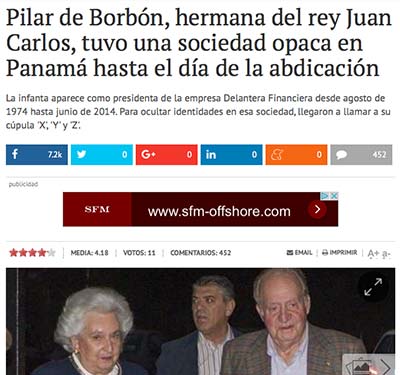 La República también es una cuestión higiénica porque la putrefacción de la corrupción, la indecencia del saqueo al que somos sometidos, la vergüenza de escándalos como Panamá y la connivencia de todos los poderes con este repugnante sistema, en cuya pirámide está la Monarquía, es por completo insoportable. Por si no fuera poco, la sensación no es la de una Monarquía que se encuentra envuelta en esta lamentable situación por casualidad o casi por obligación, sino que dan la impresión, noticia a noticia, de tratarse de unos comensales que se encuentran muy cómodos rebuscando en los cubos de basura. La última: Pilar de Borbón en Panamá.