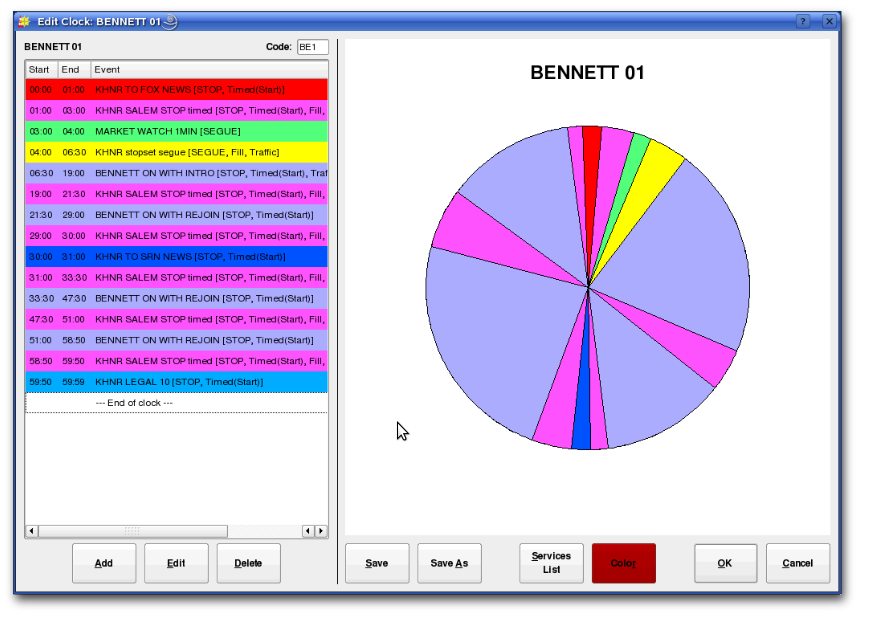 El musicalizador puede crear listas de reproducción con todas las canciones, identificaciones, pautas publicitarias, micros y demás audios que van a sonar en cada hora del día, o incluso se puede instruir al software para que las rote automáticamente. Por cada canción, puede indicar su punto de inicio y de fin, desde qué momento comienza a desvanecerse, su ganancia e incluso puede definir pistas de voz («voicetracks») que permiten pregrabar la voz de un locutor y sonarla al comienzo de una canción… útil para identificar el título, autor y género de la música venezolana, como lo exige la Ley de Responsabilidad Social. Rivendell también genera los reportes exigidos por esa ley.