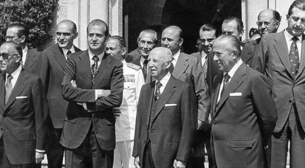 Fuentes: Rebelión [Imagen: El príncipe de España, Juan Carlos de Borbón, Francisco Franco y Carlos Arias Navarro en El Pardo con los miembros del Consejo de Ministros. Créditos: Espai Marx]