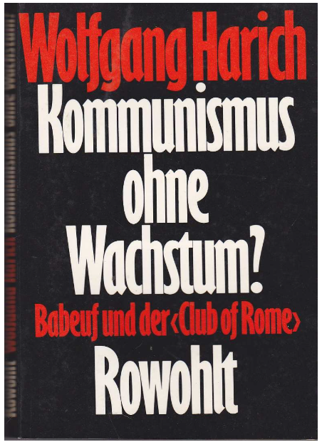 Han sido autores burgueses los que han dado la voz de alarma sobre estos problemas. Aunque en el pasado comunista había una tradición de comunismo ascético o comunismo con escasez (la tradición de Babeuf y la «conspiración de los iguales», de finales del siglo XVIII y principios del XIX), sin embargo, esos precedentes estaban olvidados. La mayoría de los marxistas, y, en general, comunistas de este siglo entendía, y sigue pensando, que el comunismo necesita como condición previa una gran abundancia de bienes, fruto de un gran desarrollo de las fuerzas productivas; además, que el comunismo posibilitará un crecimiento todavía más rápido de las fuerzas productivas y de la riqueza.